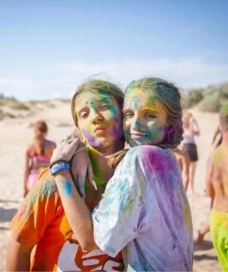 Ребята участвуют в активных играх на пляже. Если ребёнок предпочитает более спокойный отдых, он может полежать под зонтиком с любимой книжкой, позагорать и пообщаться с друзьями.